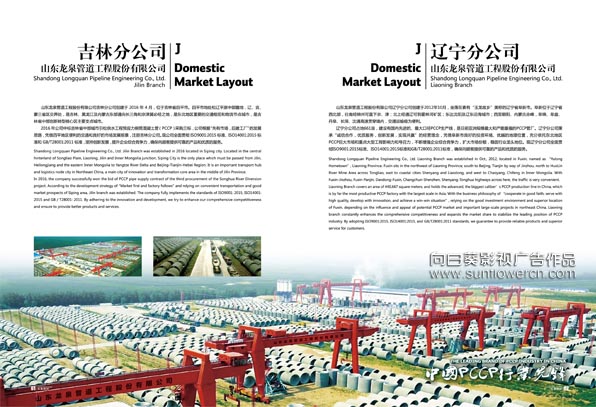 山東龍泉管道工程股份有限公司是深市上市公司(股票代碼:002671),是國內(nèi)建材行業(yè)生產(chǎn)預(yù)應(yīng)力鋼筒混凝土管(簡稱PCCP)系列產(chǎn)品的龍頭企業(yè)。向日葵廣告為龍泉股份設(shè)計(jì)印刷高檔企業(yè)宣傳畫冊。