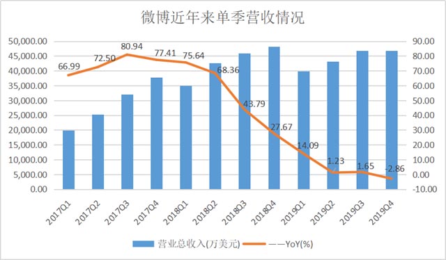 廣告收入下滑,微博單季營收增速首次降至負(fù)數(shù)