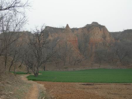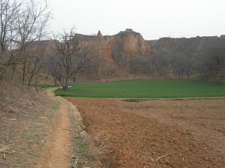 (有個(gè)傳說,明末當(dāng)?shù)厝藶楸軕?zhàn)亂,在仙人的指引下,村民們不約而同到馬蓮臺(tái)避難,后回到村里,互相詢問躲到哪去了,回答乃眾口一詞:“馬蓮臺(tái)!”人們驚得目瞪口呆!簡(jiǎn)直難以相信,一座小小的土臺(tái),兩間狹窄的草庵,竟然藏下了幾千人!更奇怪的是,人們竟然誰也沒有見到誰。)這是回來后上網(wǎng)查的資料,去過了,我居然深信不疑,因?yàn)楦吲_(tái)之上,也綿延幾十米,且高低錯(cuò)綜,前山后山枝杈蔓蔓,地勢(shì)復(fù)雜,隱藏幾千人料無問題。不過現(xiàn)在最高處風(fēng)化侵蝕嚴(yán)重,怕是過幾年連接的小路會(huì)斷開,真的成了“孤臺(tái)”了。