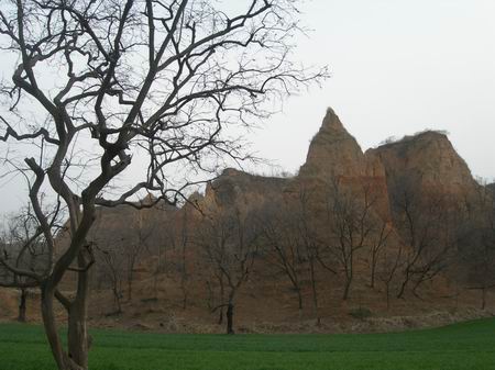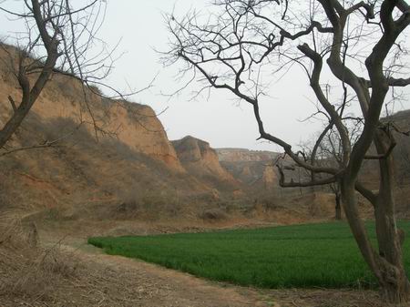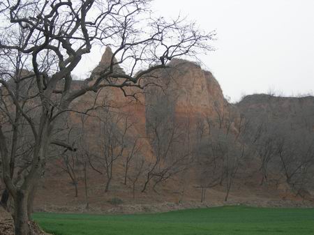 出了石頭河,一路沿著枯藤、老樹、昏鴉、黃土前往馬蓮臺(tái),下到谷底,土路極為平坦,拐一個(gè)彎,面前的景致便不一樣,連拐了幾個(gè)大彎,仿佛永遠(yuǎn)也走不到盡頭,就這么走下去。身處谷底,周圍是齊地人謂之“臺(tái)”的大土林,比山要矮,比臺(tái)要高,極其滄桑、原始,除了伴著一路的麥田,見不到一絲的人煙,而麥田倒顯得不真實(shí)起來。遠(yuǎn)遠(yuǎn)望見馬蓮臺(tái),我們轉(zhuǎn)到其后面,從一側(cè)艱難爬了上去。后面的景致又不一樣,遠(yuǎn)山、成群的“土林”、老樹,寂靜無聲,那種歷史感,仿佛它們從來都在,亙古地存在著,直如來到原始社會(huì),而馬蓮臺(tái)就佇立在那兒,遺世而獨(dú)立,孤單、孑孓、寂寞。