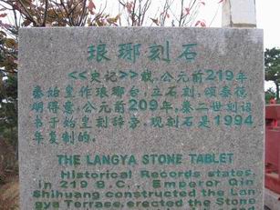 現(xiàn)存的秦代石刻,《嶧山刻石》、《泰山刻石》都是看了的,一直以為《瑯琊刻石》是在平度境內(nèi),現(xiàn)在想來是和平度天柱山《鄭文公碑》搞混了。原來瑯琊臺是兩千多年前人工筑就的,秦始皇從內(nèi)地遷來3萬戶百姓,修筑瑯琊臺,并3次東巡登臨瑯琊,這里還是徐福率數(shù)千童男童女東渡日本的啟航地。再往前,越王勾踐居然想徒都瑯琊,還在此會盟諸候,成就春秋霸業(yè)。酈道元《水經(jīng)注》云“孤立特顯,出于眾山上,下周二十余里,傍濱巨海”,瑯琊臺“臺基三層,層高三丈,上級平敞,方二百余步,高五里”。且看這臺與齊地之古臺有何相異獨特之處,足以令始皇三次登臨,修筑宮殿,居住長達三月?