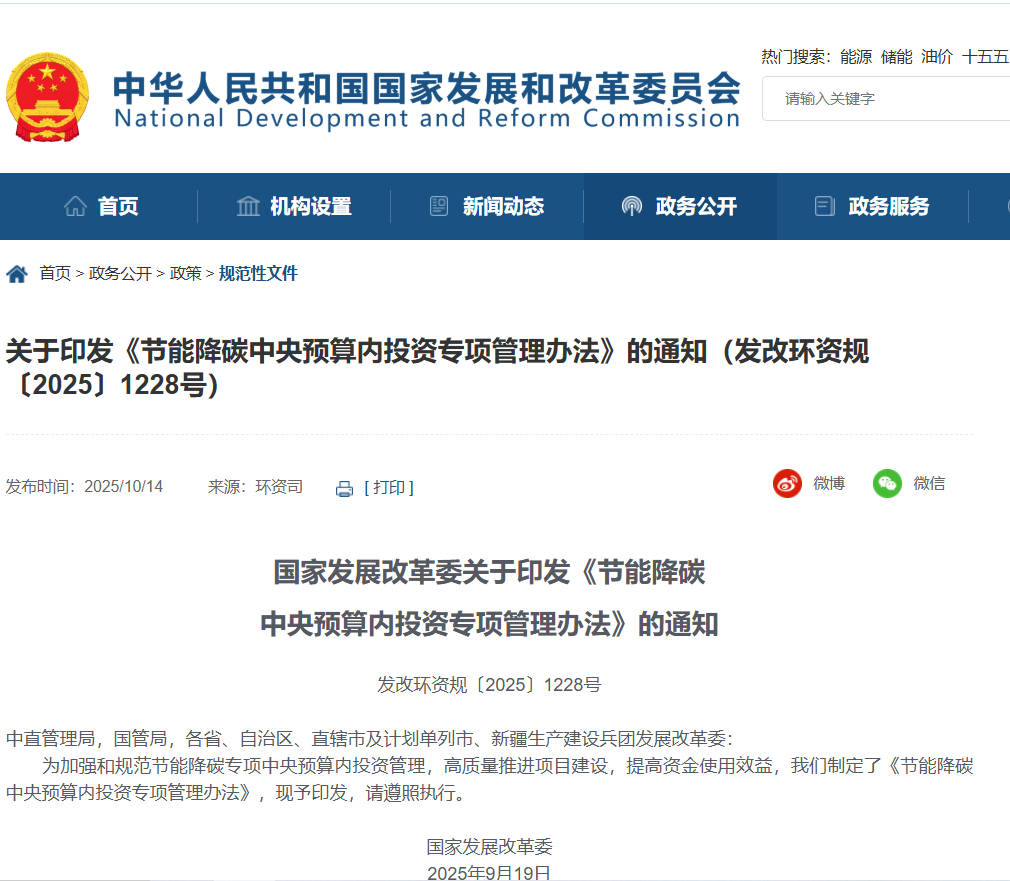 國家發(fā)展改革委關(guān)于印發(fā)《節(jié)能降碳中央預(yù)算內(nèi)投資專項(xiàng)管理辦法》的通知
