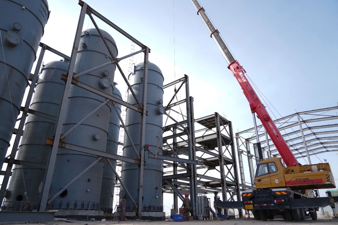 (現(xiàn)場正在進(jìn)行設(shè)備吊裝。郭子毅攝)